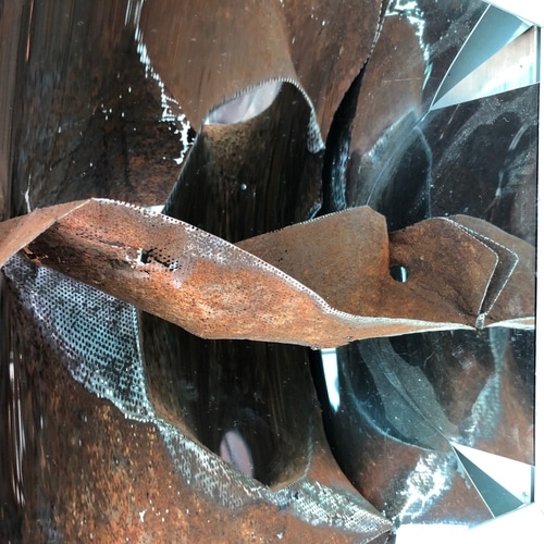 Lencséből készült geometrikus formavilágú mozaik alkotás, ami a vörös-zöld komplementer kontraszt természetes előfordulásán alapul, a finom árnyalatok megkülönböztetésének eszközével.